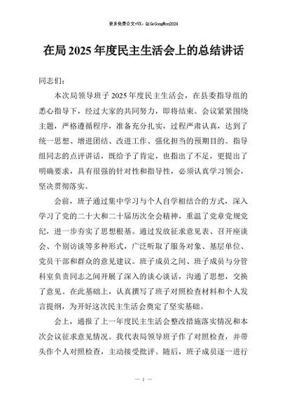 / 【七哥公文】2026年:在局2025年度民主生活会上的总结讲话+更多免费公文+VX:QiGeGongWen2024