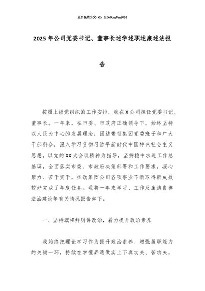 【七哥公文】2026年:2025年公司党委书记、董事长述学述职述廉述法报告_副本+更多免费公文+VX:QiGeGongWen2024
