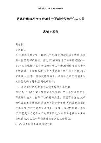 【七哥公文】2026年:党课讲稿:在坚守与开拓中书写新时代海洋化工人的忠诚与担当_副本+更多免费公文+VX:QiGeGongWen2024