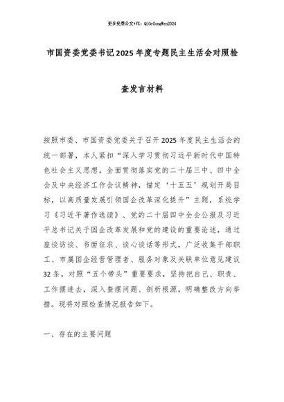【七哥公文】2026年:市国资委党委书记2025年度专题民主生活会对照检查发言材料_副本+更多免费公文+VX:QiGeGongWen2024