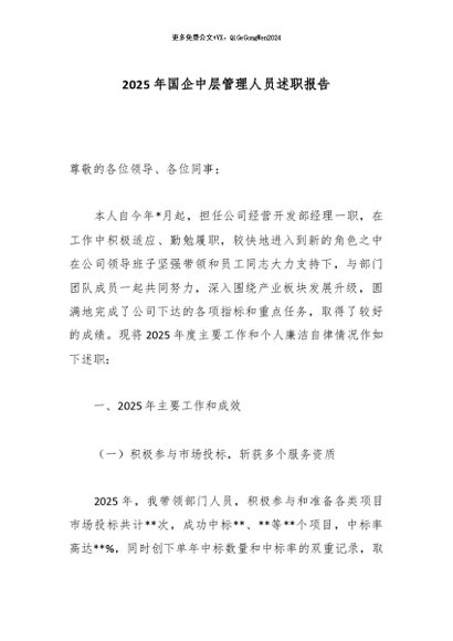 / 【七哥公文】2026年:2025年国企中层管理人员述职报告_副本+更多免费公文+VX:QiGeGongWen2024