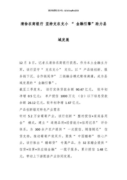 【七哥公文】2026年:清徐农商银行 坚持支农支小“ 金融引擎”助力县域发展_副本+更多免费公文+VX:QiGeGongWen2024