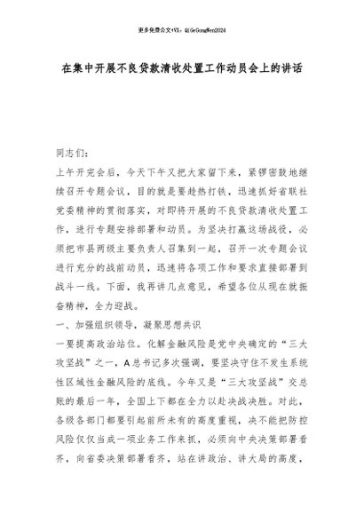 【七哥公文】2026年:在集中开展不良贷款清收处置工作动员会上的讲话_副本+更多免费公文+VX:QiGeGongWen2024