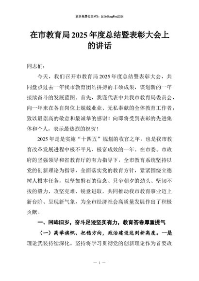 / 【七哥公文】2026年:在市教育局2025年度总结暨表彰大会上的讲话+更多免费公文+VX:QiGeGongWen2024