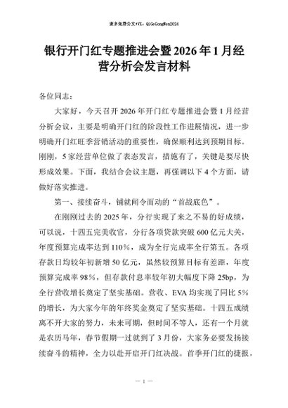 【七哥公文】2026年:银行开门红专题推进会暨2026年1月经营分析会发言材料+更多免费公文+VX:QiGeGongWen2024