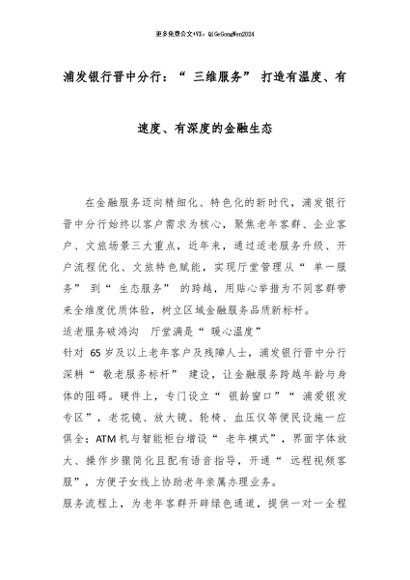 【七哥公文】2026年:浦发银行晋中分行:“ 三维服务” 打造有温度、有速度、有深度的金融生态_副本+更多免费公文+VX:QiGeGongWen2024