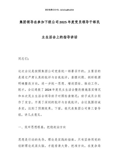 【七哥公文】2026年:集团领导在参加下级公司2025年度党员领导干部民主生活会上的指导讲话_副本+更多免费公文+VX:QiGeGongWen2024