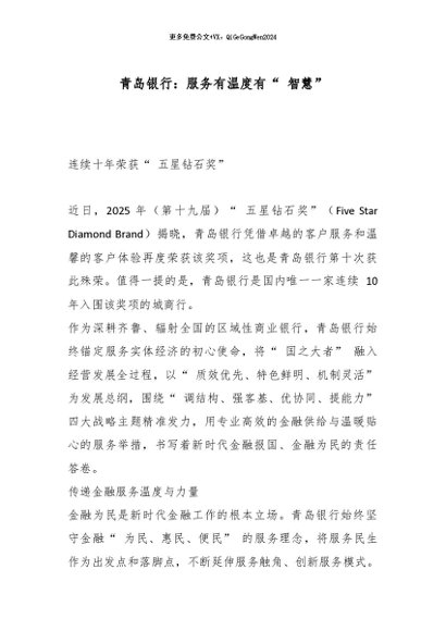 / 【七哥公文】2026年:青岛银行:服务有温度有“ 智慧”_副本+更多免费公文+VX:QiGeGongWen2024