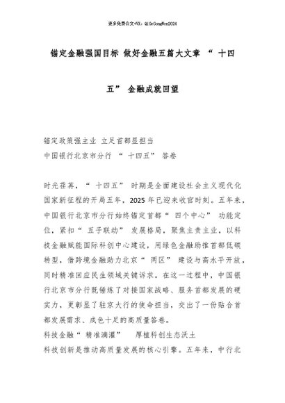 【七哥公文】2026年:锚定金融强国目标 做好金融五篇大文章 “ 十四五” 金融成就回望_副本+更多免费公文+VX:QiGeGongWen2024