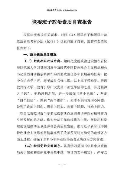 【七哥公文】2026年:党委班子政治素质自査报告+更多免费公文+VX:QiGeGongWen2024