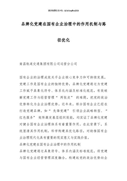 【七哥公文】2026年:品牌化党建在国有企业治理中的作用机制与路径优化_副本+更多免费公文+VX:QiGeGongWen2024