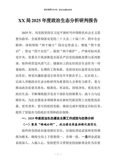 / 【七哥公文】2026年:XX局2025年度政治生态分析研判报告+更多免费公文+VX:QiGeGongWen2024