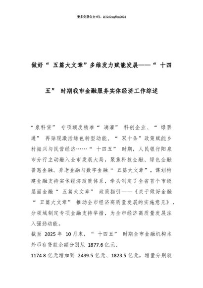 【七哥公文】2026年:做好“ 五篇大文章”多维发力赋能发展——“ 十四五” 时期我市金融服务实体经济工作综述_副本+更多免费公文+VX:QiGeGongWen2024