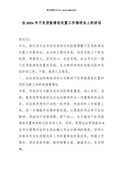 【七哥公文】2026年:在202x年不良贷款清收处置工作推进会上的讲话_副本+更多免费公文+VX:QiGeGongWen2024