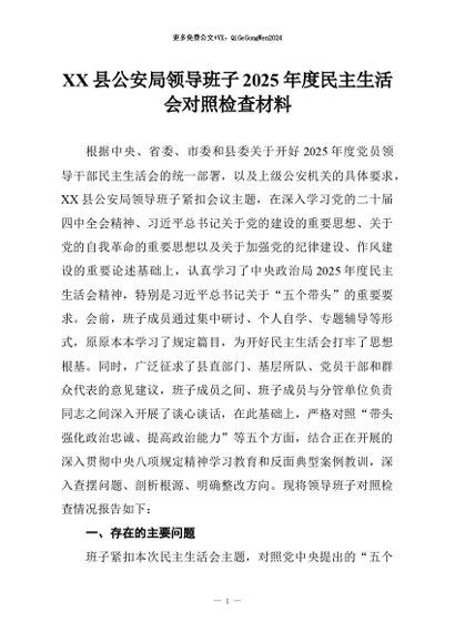 【七哥公文】2026年:XX县公安局领导班子2025年度民主生活会对照检查材料+更多免费公文+VX:QiGeGongWen2024