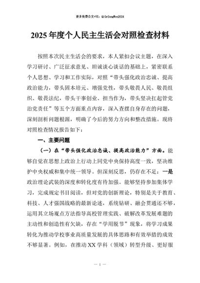 / 【七哥公文】2026年:2025年度个人民主生活会对照检查材料+更多免费公文+VX:QiGeGongWen2024