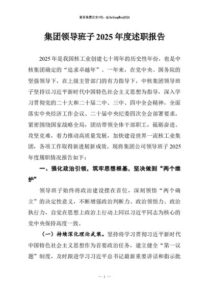 / 【七哥公文】2026年:集团领导班子2025年度述职报告+更多免费公文+VX:QiGeGongWen2024