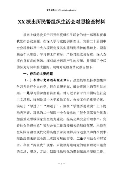 / 【七哥公文】2026年:XX派出所民警组织生活会对照检查材料+更多免费公文+VX:QiGeGongWen2024