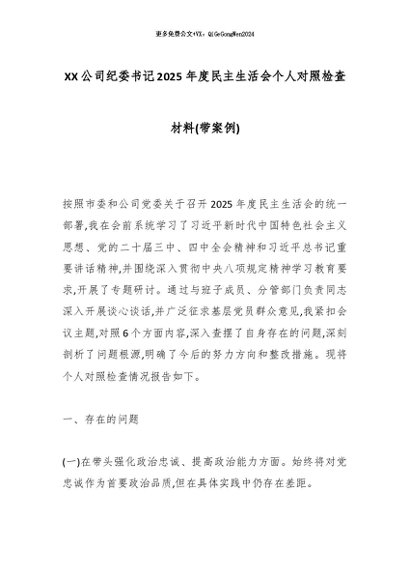 【七哥公文】2026年:XX公司纪委书记2025年度民主生活会个人对照检查材料(带案例)_副本+更多免费公文+VX:QiGeGongWen2024
