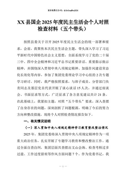 【七哥公文】2026年:XX县国企2025年度民主生活会个人对照检查材料(五个带头)+更多免费公文+VX:QiGeGongWen2024