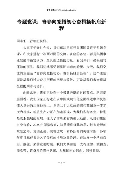 / 【七哥公文】2026年:专题党课:青春向党悟初心奋楫扬帆启新程+更多免费公文+VX:QiGeGongWen2024