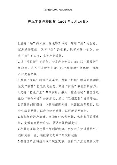 / 【七哥公文】2026年:产业发展类排比句(2026年1月14日)_副本+更多免费公文+VX:QiGeGongWen2024