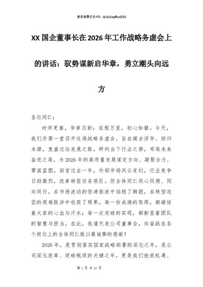 【七哥公文】2026年:XX国企董事长在2026年工作战略务虚会上的讲话:驭势谋新启华章,勇立潮头向远方_副本+更多免费公文+VX:QiGeGongWen2024