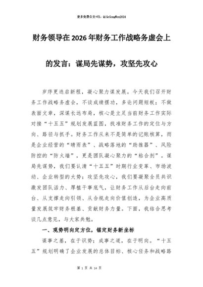 【七哥公文】2026年:财务领导在2026年财务工作战略务虚会上的发言:谋局先谋势,攻坚先攻心(1)_副本+更多免费公文+VX:QiGeGongWen2024
