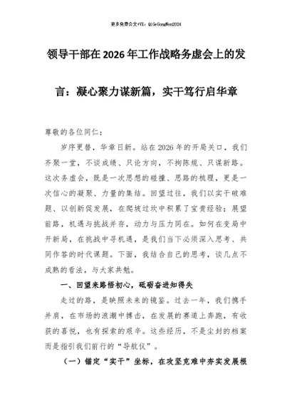 【七哥公文】2026年:领导干部在2026年工作战略务虚会上的发言:凝心聚力谋新篇,实干笃行启华章_副本+更多免费公文+VX:QiGeGongWen2024