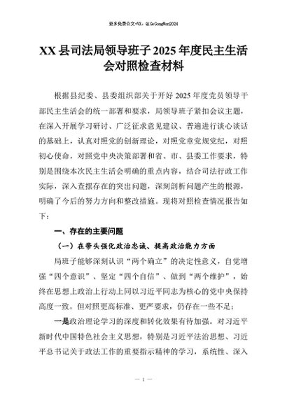【七哥公文】2026年:XX县司法局领导班子2025年度民主生活会对照检查材料+更多免费公文+VX:QiGeGongWen2024