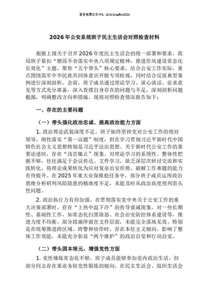 【七哥公文】2026年:2026年公安系统班子民主生活会对照检查材料+更多免费公文+VX:QiGeGongWen2024