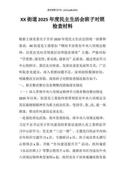 / 【七哥公文】2026年:XX街道2025年度民主生活会班子对照检查材料+更多免费公文+VX:QiGeGongWen2024