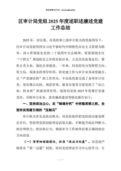 / 【七哥公文】2026年:区审计局党组2025年度述职述廉述党建工作总结+更多免费公文+VX:QiGeGongWen2024
