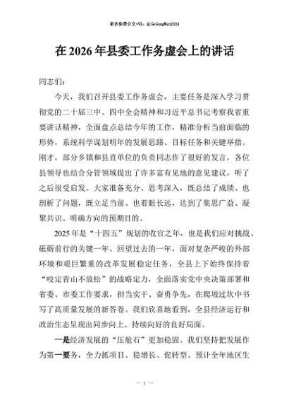 / 【七哥公文】2026年:在2026年县委工作务虚会上的讲话+更多免费公文+VX:QiGeGongWen2024