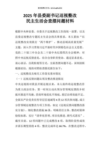 / 【七哥公文】2026年:2025年县委副书记巡视整改民主生活会查摆问题材料+更多免费公文+VX:QiGeGongWen2024