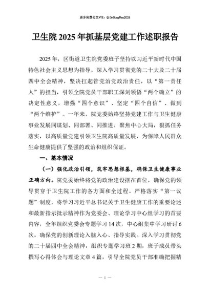 / 【七哥公文】2026年:卫生院2025年抓基层党建工作述职报告+更多免费公文+VX:QiGeGongWen2024