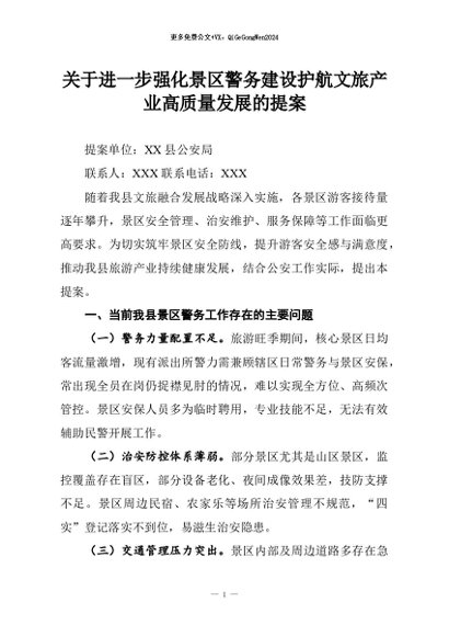【七哥公文】2026年:关于进一步强化景区警务建设护航文旅产业高质量发展的提案+更多免费公文+VX:QiGeGongWen2024