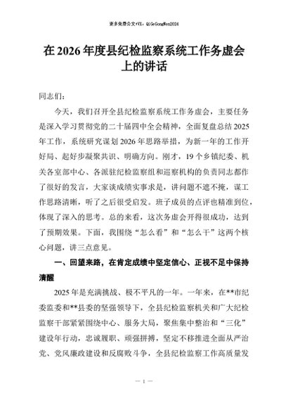 / 【七哥公文】2026年:在2026年度县纪检监察系统工作务虚会上的讲话+更多免费公文+VX:QiGeGongWen2024
