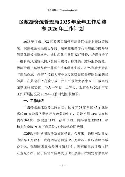 【七哥公文】2026年:区数据资源管理局2025年全年工作总结和2026年工作计划+更多免费公文+VX:QiGeGongWen2024