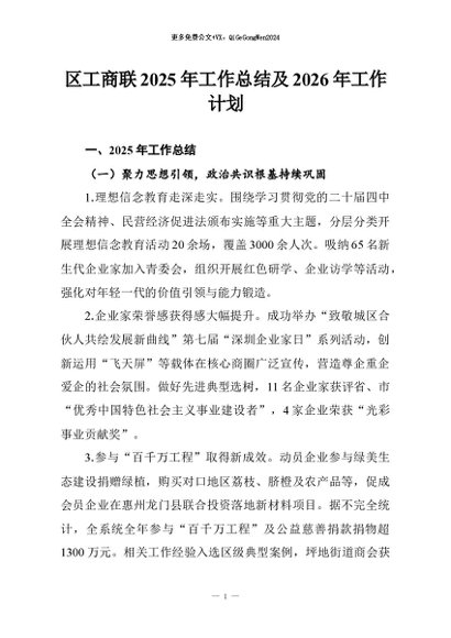 / 【七哥公文】2026年:区工商联2025年工作总结及2026年工作计划+更多免费公文+VX:QiGeGongWen2024