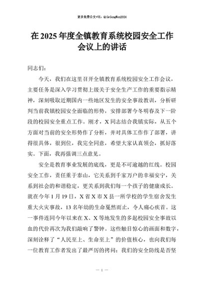 【七哥公文】2026年:在2025年度全镇教育系统校园安全工作会议上的讲话+更多免费公文+VX:QiGeGongWen2024
