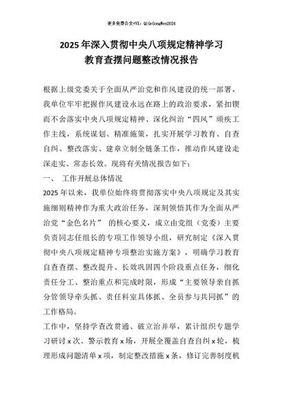 【七哥公文】2026年:2025年深入贯彻中央八项规定精神学习教育查摆问题整改情况报告(1)+更多免费公文+VX:QiGeGongWen2024