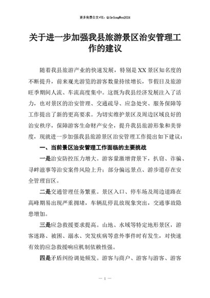/ 【七哥公文】2026年:关于进一步加强我县旅游景区治安管理工作的建议+更多免费公文+VX:QiGeGongWen2024