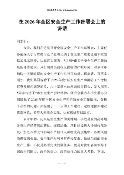 / 【七哥公文】2026年:在2026年全区安全生产工作部署会上的讲话+更多免费公文+VX:QiGeGongWen2024
