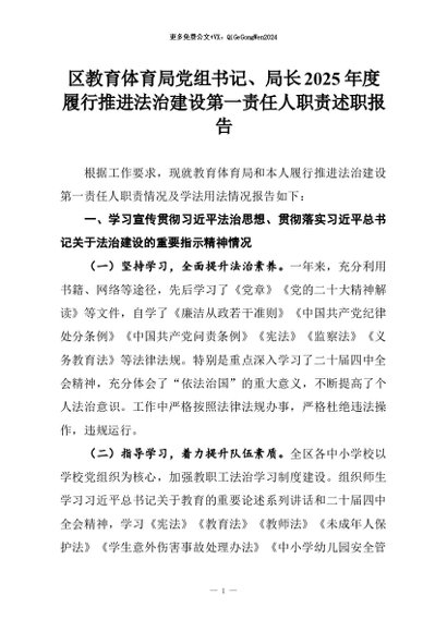 【七哥公文】2026年:区教育体育局党组书记、局长2025年度履行推进法治建设第一责任人职责述职报告+更多免费公文+VX:QiGeGongWen2024