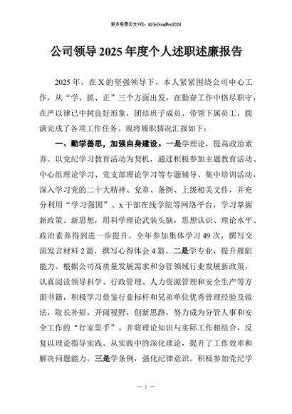 / 【七哥公文】2026年:公司领导2025年度个人述职述廉报告+更多免费公文+VX:QiGeGongWen2024