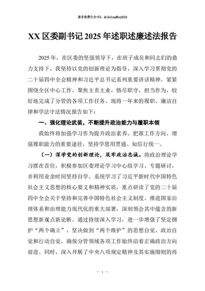 / 【七哥公文】2026年:XX区委副书记2025年述职述廉述法报告+更多免费公文+VX:QiGeGongWen2024