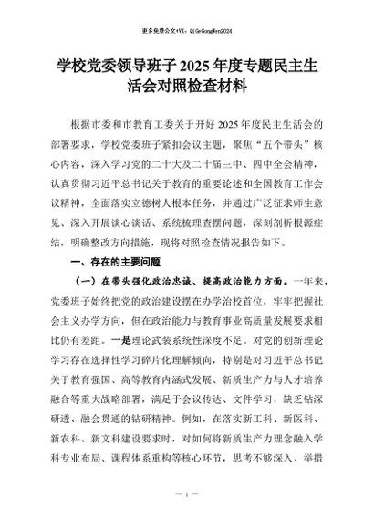 【七哥公文】2026年:学校党委领导班子2025年度专题民主生活会对照检查材料+更多免费公文+VX:QiGeGongWen2024