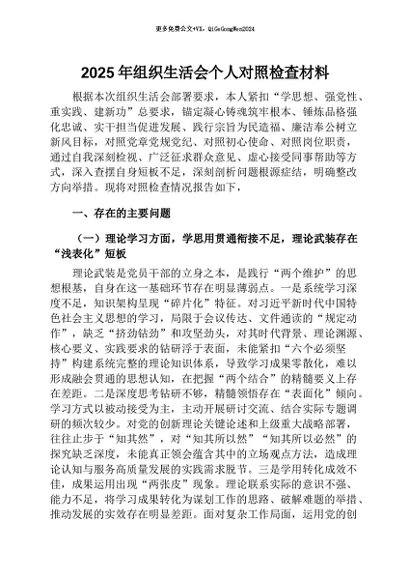 / 【七哥公文】2026年:2025年组织生活会个人对照检查材料+更多免费公文+VX:QiGeGongWen2024