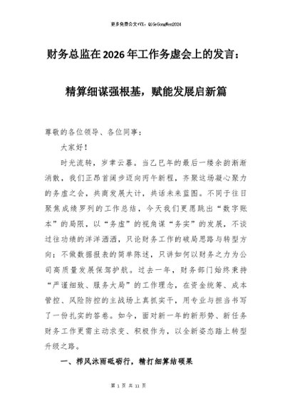 【七哥公文】2026年:财务总监在2026年工作务虚会上的发言:精算细谋强根基,赋能发展启新篇+更多免费公文+VX:QiGeGongWen2024